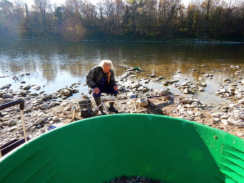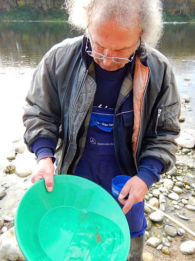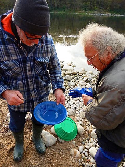 (Istein, 25.11.2018) Die perfekte Goldwaschstelle fragt nicht, ob sie gefunden werden will. Sie ist einfach da. Du musst sie nur finden. Nach einem erfolgreichen Start war sie da: In fast jeder Waschpfanne fand sich Gold. Nicht ein Stückchen, sondern oft mehrere gleichzeitig.