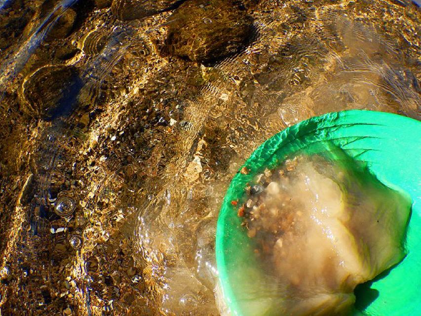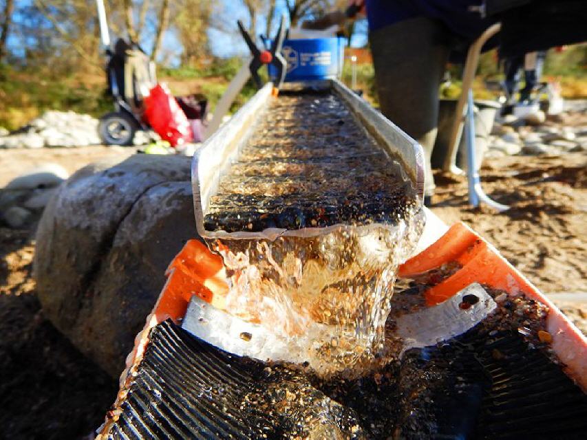 Aber auch für die Profis ist es jedes Mal eine Herausforderung, die besten Stellen zu finden. Selbst auf einer goldführenden Goldwaschbank ist das gelbe Metall unterschiedlich verteilt. Du kannst einen Volltreffer landen und in jeder Pfanne mehrere Goldflitterchen haben, aber schon einen Meter nebendran gehst Du leer aus. Es gehört also auch ein Quentchen Glück dazu.
