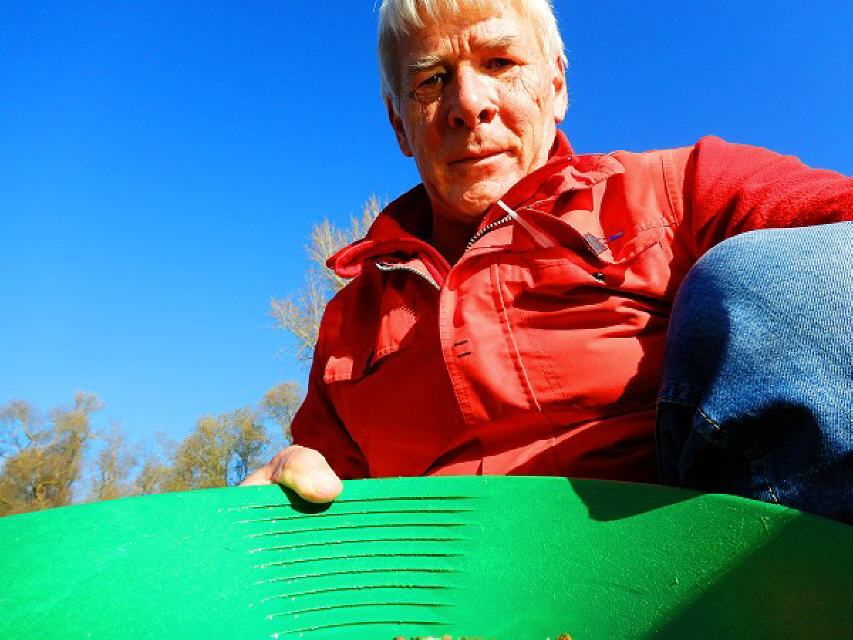 Auch Wolfgang war vor Ort. Mit einer bewundernswerten Ruhe schaufelte er den Sand aus ein und demselben Loch, spülte den feinen Sand in die selbst gebaute Rinne und tupfte immer mal wieder ein Flitterchen heraus. Wolfgang war zufrieden mit seinen Funden.