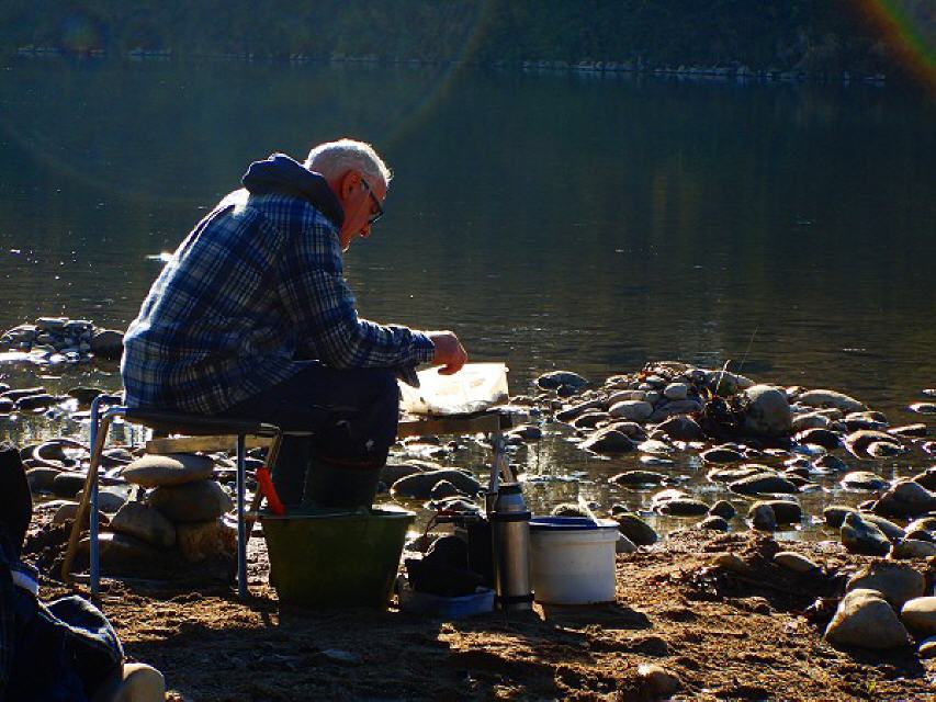 Auch heute war er wieder voller Erwartungen. Diesmal werde er seinen alten Rekord einstellen. Klar, denn er kennt sich aus. Doch als er mit dem Buddeln begann, kam die Ernüchterung. In der Pfanne glänzten nur so viele Goldstückchen wie das vorige und das vorvorige Mal. Also nichts Besonders. Aber wer weiß, denn der Tag ist lang.