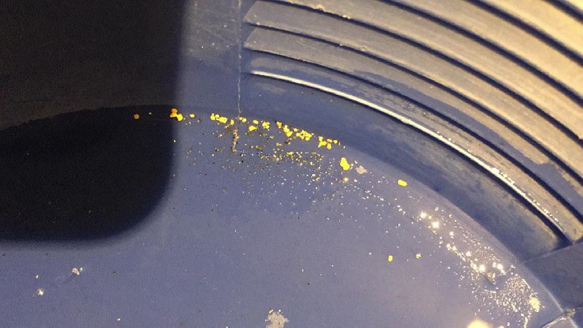 Von wegen, das Loch unmittelbar an der Wasserkante hat kein Gold! Sascha aus Lörrach, einer der beiden Goldsucher, die ich vor kurzem hier fleißig graben sah und die mir ihre tollen Ergebnisse zeigten, schrieb mir nun, er sei gerade wieder vor Ort gewesen. Mit Erfolg. Auch buddelte er diesmal “weiter hinten” auf der Geröllbank. Das Ergebnis kann sich wirklich sehen lassen. Die beiden Bilder hat er mir per WhatsApp geschickt. Danke, Sascha! Und herzlichen Glückwunsch!