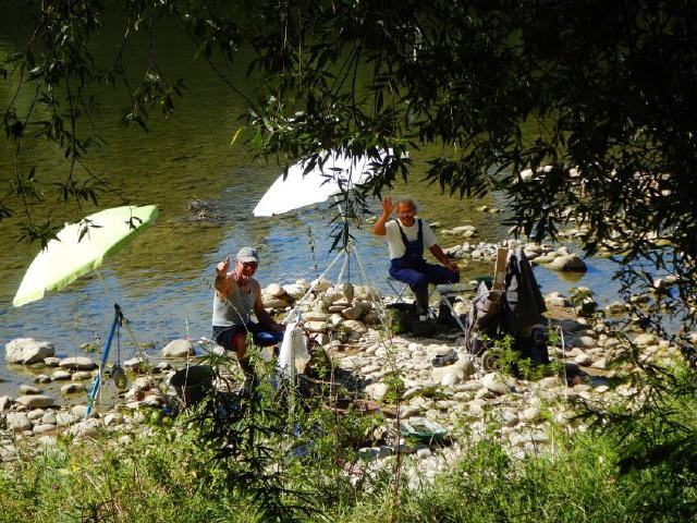 Dann kam der zweite Goldsucher von oberhalb zu uns. Er sah ziemlich spannend aus: langes Hemd mit Badehose. Er heißt Werner, stammt aus der Gegend und ist ebenfalls öfters hier. “Hat Euch der Typ auch von den vielen Funden erzählt?” fragte Werner. “Wenn der weniger als 30 Flitter in der Pfanne hat, taugt der Waschplatz nichts.” Ich schaute in meine Pfanne. Darin glänzten gerade mal zwei, vielleicht drei Flitterchen. Es waren die schönsten Goldstückchen überhaupt. Ich tupfte sie zu den anderen in das Aufbewahrungsgläschen und war trotzdem happy.