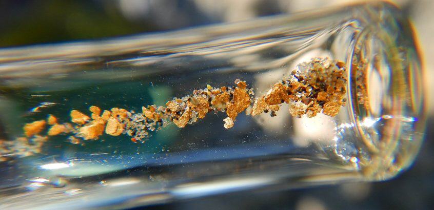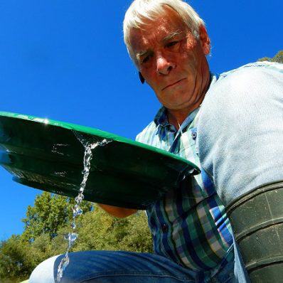 Dann gaben wir Gas: noch schneller buddeln, schwenken und die Goldflitter aus der Pfanne tupfen. Ein paar Gramm Gold, das wollten wir auch. Stille, nur das Plätschern der Schaufeln und Pfannen. Gelegentlich unterbrochen von Jubelrufen. Hans hatte mal wieder einen Großen gefunden. Gemeint waren Flitter von einem Millimeter Durchmesser. Oder halb so groß.