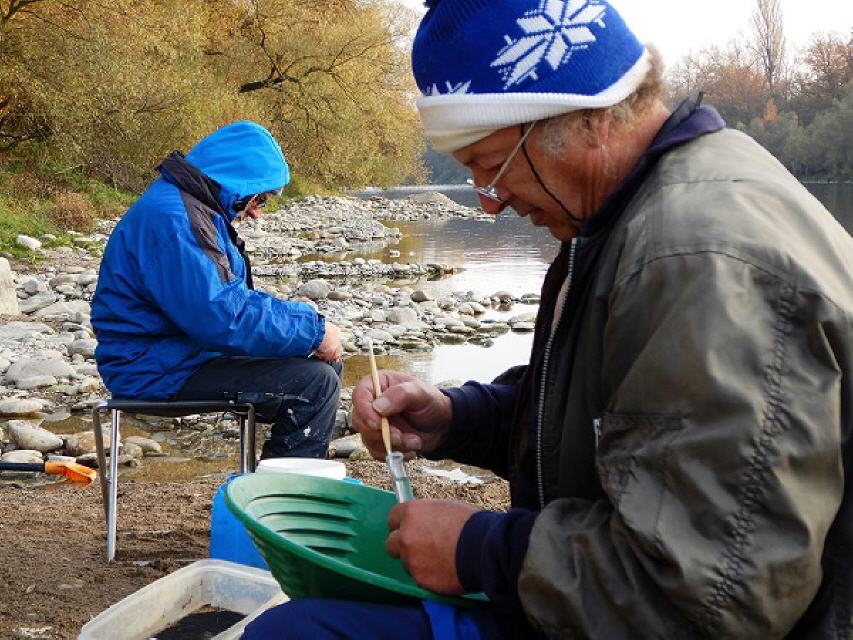 Der heutige Tag hatte es in sich. Das lag nicht daran, dass ich nach einer stressigen Arbeitswoche komplett verschlafen hatte und infolgedessen erst gegen Mittag am Rheinufer eintraf. Dort waren bereits Hans und Wolfgang, zwei Goldsucher-Freunde aus Rastatt und dem Markgräflerland, emsig mit dem Goldschürfen beschäftigt. Ruhig hockten sie an den Rinnen, zählten die Funde, während ich damit beschäftigt war, das Arbeitsgerät auszupacken.