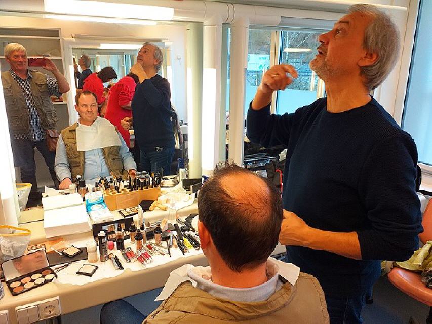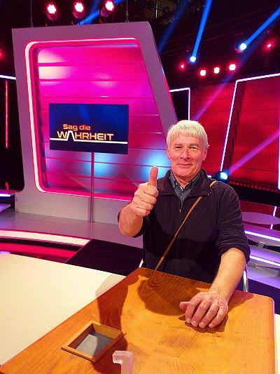 Am nächsten Morgen holte mich das Produktionsteam gemeinsam mit den weiteren Kandidaten zum Studio ab. Nach der ausführlichen Führung durch die SWR-Gebäude ging’s zur Besprechung mit anschließendem Besuch des Sag-die-Wahrheit-Studios. Dort wurden die Bewegungsabläufe kurz einstudiert, die Positionen der Kameras bestimmt. Moderator Michael Antwerpes fragte jeden der Mitwirkenden Löcher in den Bauch und bereitete sich somit auf die Aufnahmen vor.