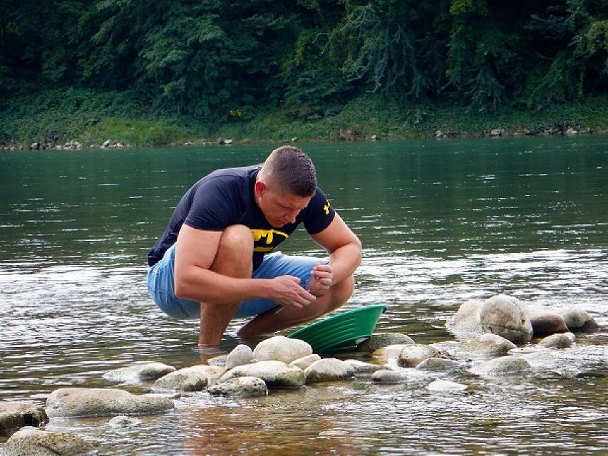 Das Goldwaschen ist ein Abenteuer, wie es kein zweites gibt. Eine Teilnehmerin wird diesen Sonntag wohl nie vergessen. Gemeinsam mit ihrem Freund hatte sie einen Goldwaschtag gebucht. Mindestens einmal im Leben echtes Rheingold schürfen und gemeinsam schöne Stunden verbringen. Und dann das! Plötzlich lag in ihrer Pfanne ein goldener Ring. Hineingetan hatte ihn der Freund. Er nutzte die Gelegenheit, seiner Liebe einen Heiratsantrag zu machen. Sie konnte es nicht fassen, war gerührt.