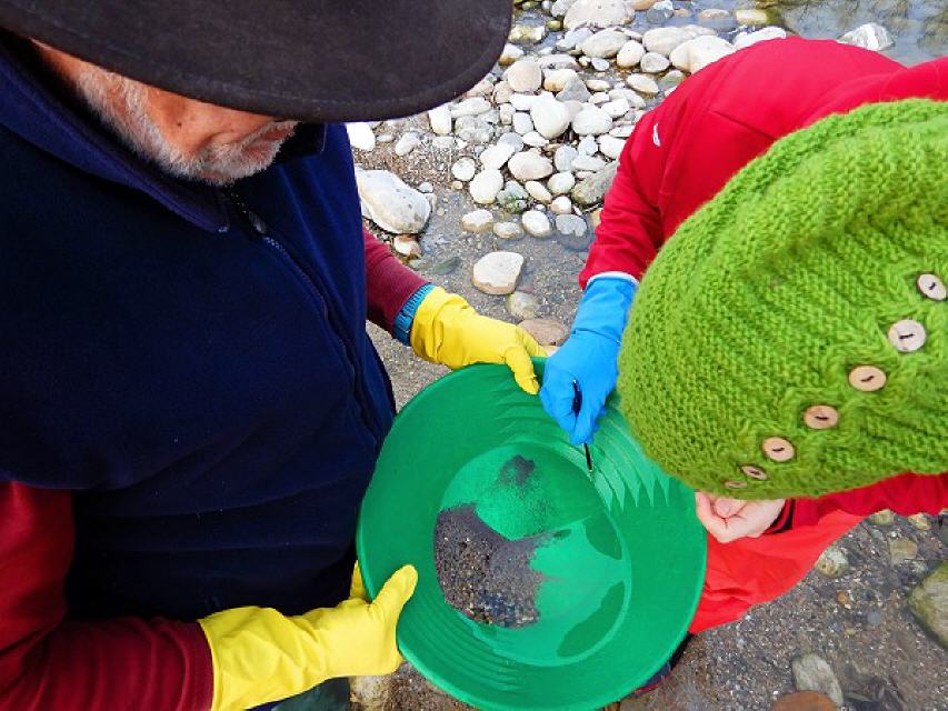 Was für ein Glück! Am Freitag hatte es noch heftig geregnet, und auch für Sonntag waren Dauerschauer angesagt. Aber der Samstag, der Goldwaschtag, war ganz anders: Sonnenschein vom Morgen bis in die Abendstunden. Besser hätte es uns gar nicht passieren können. Klar, der Sonnenstag war extra für die Goldsucher gemacht. Bei Sonnenschein glänzt das Gold ja sowieso viel schöner als bei Regen…