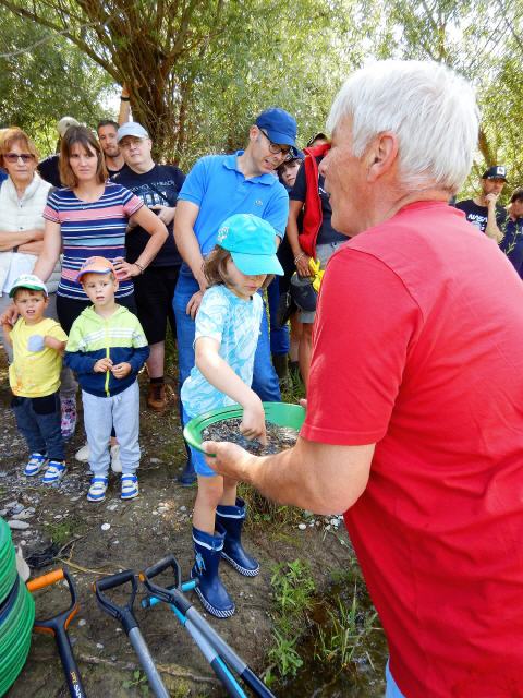 Ihren Spaß hatten ebenso die Kinder. Für die Kleinsten war der Umgang mit der Pfanne zu schwierig. Stattdessen konzentrierten sie sich auf die vielen schönen, bunten Steine. Andere sammelten kleine, weiße Muscheln ein. Muschelschalen kannten sie allenfalls vom Urlaub am Meer. Dass es sie auch hier gab, erstaunte dann doch sehr.