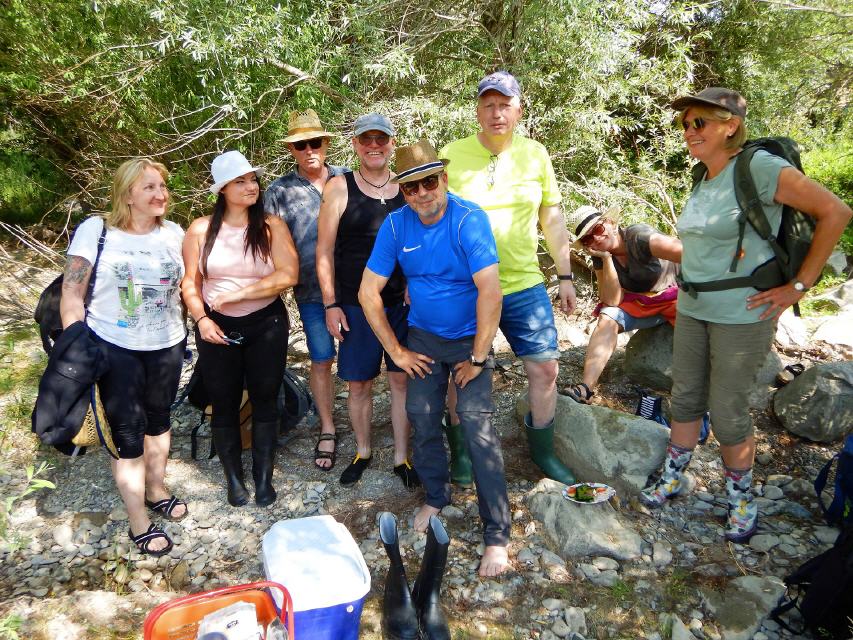 Am Ufer angekommen, trafen wir auch gleich auf mehrere altbekannte Goldsucher. Die Freude über das Wiedersehen war groß, und auch ihre bis dahin gemachten Funde ließen unsere Herzen höher schlagen. Allerdings hatte keiner der Kursteilnehmer jemals zuvor nach dem gelben Metall geschürft. Deshalb stand erst einmal eine gründliche Einweisung an. Darin ging es, grundsätzliches Wissen zu vermitteln und dieses anschließend praktisch umzusetzen. Schließlich liegt das Gold nicht einfach auf der Oberfläche herum.