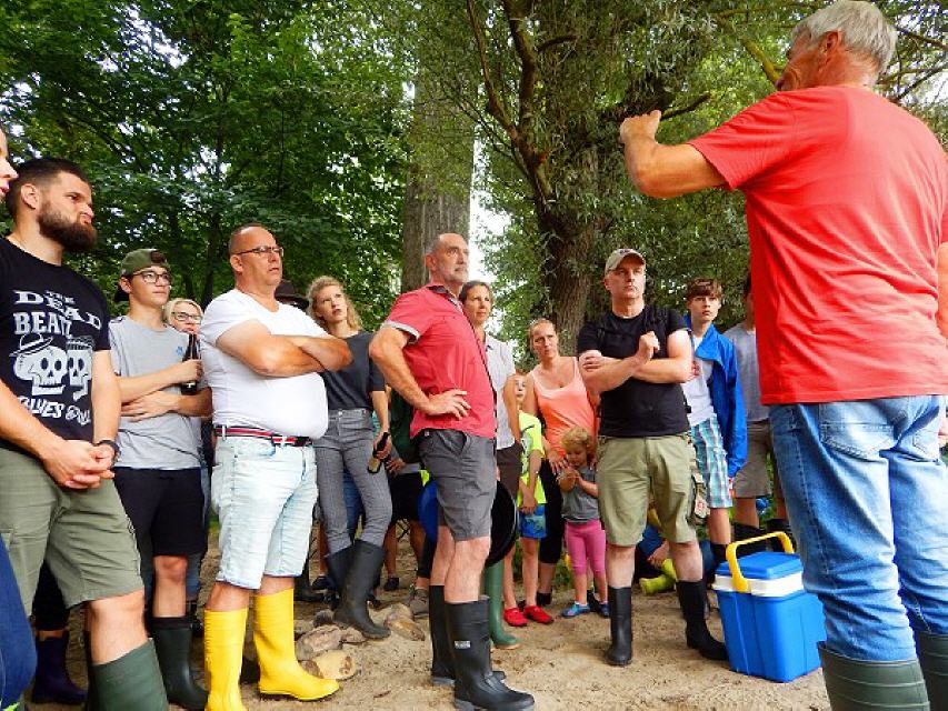 Dass das Goldwaschen kräftezehrend sein kann, spürten die Teilnehmer von Beginn an. Denn wer Gold finden will, muss zunächst den edelmetallhaltigen Sand in ein Sieb schaufeln und diesen anschließend von den groben Kieselsteinen trennen. Genau diesen Teil der Goldschürferei durfte ich (noch) nicht ausführen. Meine Freunde Wolfgang und Hans hatten glücklicherweise vor Tagen mitgeteilt, einzuspringen, Sand zu erschaufeln und vorzusieben. Das Gold aus den Pfannen waschen, das mussten die Teilnehmer dann selbst übernehmen.
