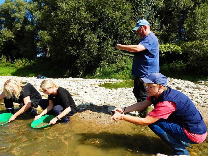 Obwohl das Goldwaschen – mit Vesperpause – bis in die frühen Abendstunden dauerte, verging auch dieser Tag wie im Flug. Wir alle konnten es nicht fassen, als die Sonne bereits tief am Himmel stand und uns an den nahenden Abend erinnerte. Für Steffi und mich war es ebenso wie für die Teilnehmer ein ganz besonders schöner Tag mit herrlich begeisterten Teilnehmern. Herzlichen Dank an alle!