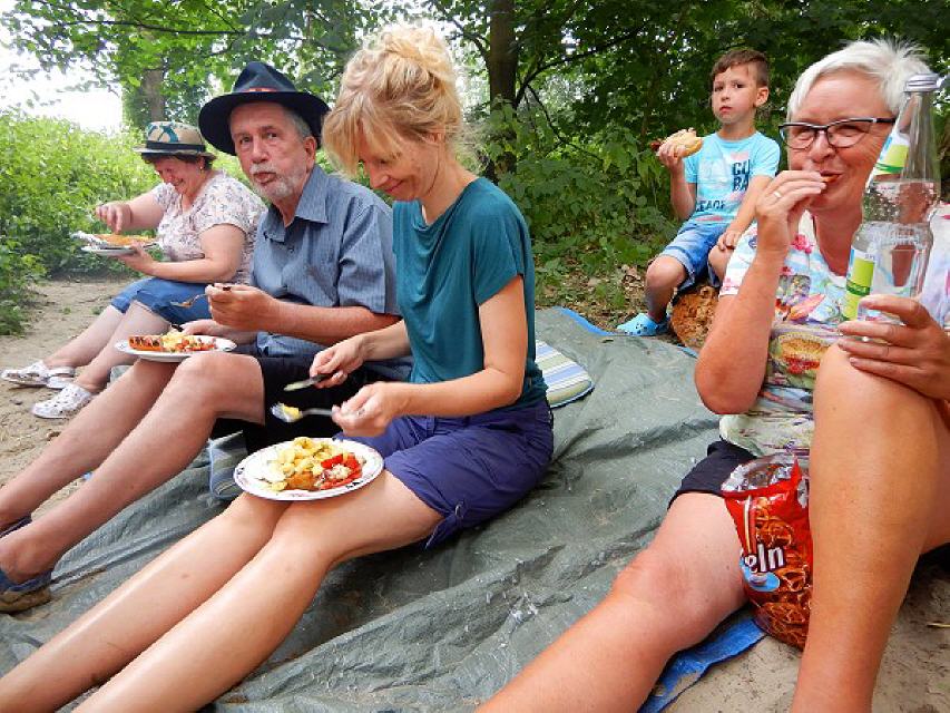 Noch bei der Begrüßung in Bad Bellingen standen wir unter einem tiefblauen Himmel. Es sollte ein Tag wie die vielen anderen in diesem Sommer auch werden. Dachten wir. Doch kaum am Goldwaschplatz südlich des Thermalortes eingetroffen, änderte sich das Bild sehr rasch. Dabei hatte ich meine heutige Truppe die ganze Zeit damit getröstet, unser Basislager würde unter schattenspendenden Bäumen eingerichtet – riesige und dichte Rheinwaldbäume. Ich konnte ja nicht ahnen, dass sich der Schatten gleich über den ganzen Rhein legte.